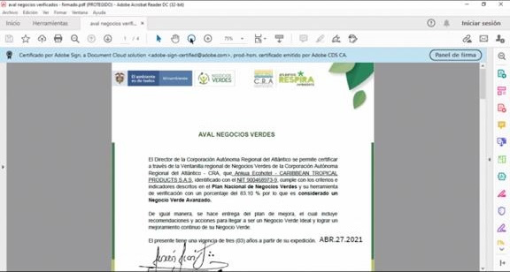 C.R.A ENTREGÓ AVAL DE NEGOCIOS VERDES A CUATRO EMPRESAS EN EL ATLÁNTICO.